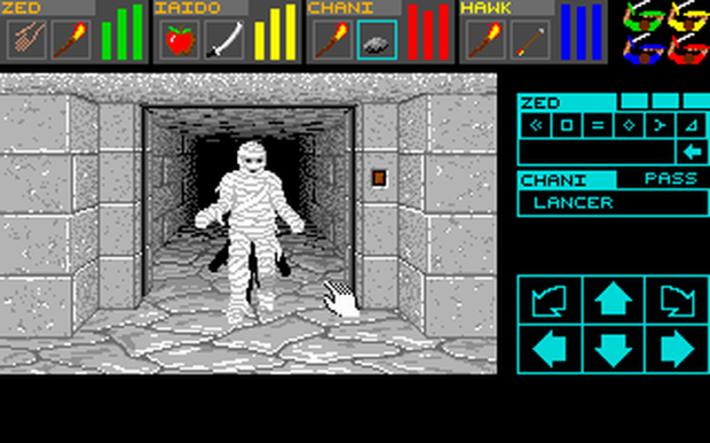 Un des jeux les plus « time consuming » jamais réalisés !!! Initialement développé pour Atari ST, il a vite été décliné sur Amiga et toutes les autres machines de l’époque tant son succès a été fulgurant. Le premier jeu de rôle en 3D, presque temps réel, avec une ambiance plutôt stressante lorsque l’on sait que l’on entend les déplacements des monstres autour de soi... Une belle galerie de héros était également disponible, chacun avec leurs forces et faiblesses, permettant de créer des équipes hétéroclites. On retrouve les composantes d’un bon jeu de rôle : action, équipements, potions, magie... D’ailleurs, un des aspects intéressants du jeu est justement son système élaboré de magie. Chaque sort est constitué de runes que l’on assemble pour créer un sort avec une certaine puissance. Que du bonheur. Il faut y avoir joué au moins une fois dans sa vie pour comprendre !!!