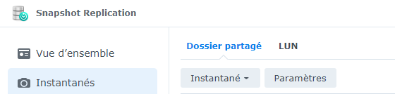 Ensuite ouvrez l'application Snapshot Replication. Dans la partie Instantanés, sélectionnez le dossier ou le