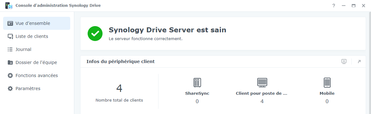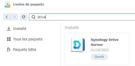 Commencez par installer le package Synology Drive Server depuis le centre de paquets du Synology.