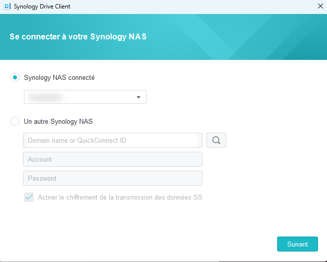 Connectez-vous à la plateforme avec votre compte Synology, le même que celui que vous avez utilisé pour déclarer votre NAS. Si vous ne l'avez pas