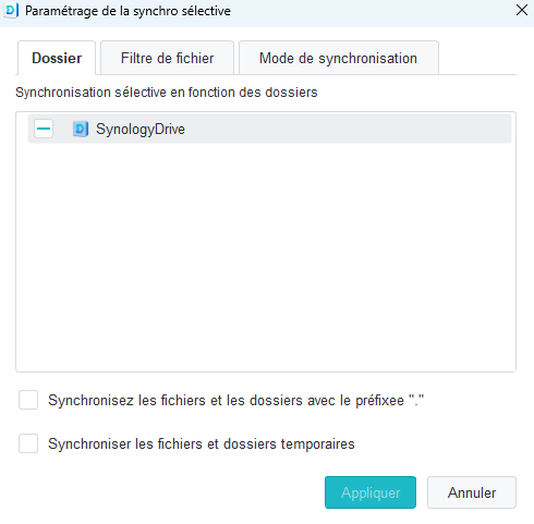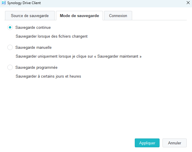 Mécanisme de protection Continue des données (Continuous Data Protection) qui permet de recopier instantanément toute modification apportée à un ensemble de fichiers et dossiers de votre ordinateur à destination d'un stockage NAS. Page officielle Synology Drive