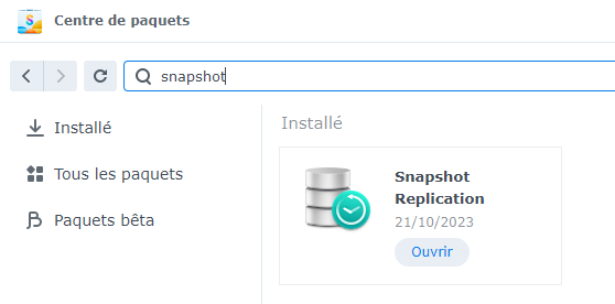 Pour activer cette fonctionnalité, il faut commencer par installer le paquet Snapshot Réplication depuis le