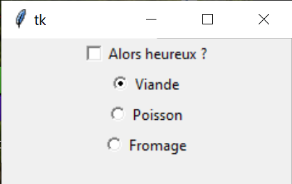 chk = tkinter.Checkbutton(app, text="alors heureux ?", offvalue=0, onvalue=1)