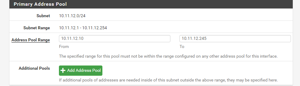Définissez ensuite le pool d'adresses qui sera mis en place pour les postes faisant la demande d'IP.