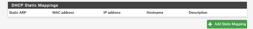Il vous faut appuyer sur le bouton Add Static Mapping situé au fond de la page de configuration du service DHCP.