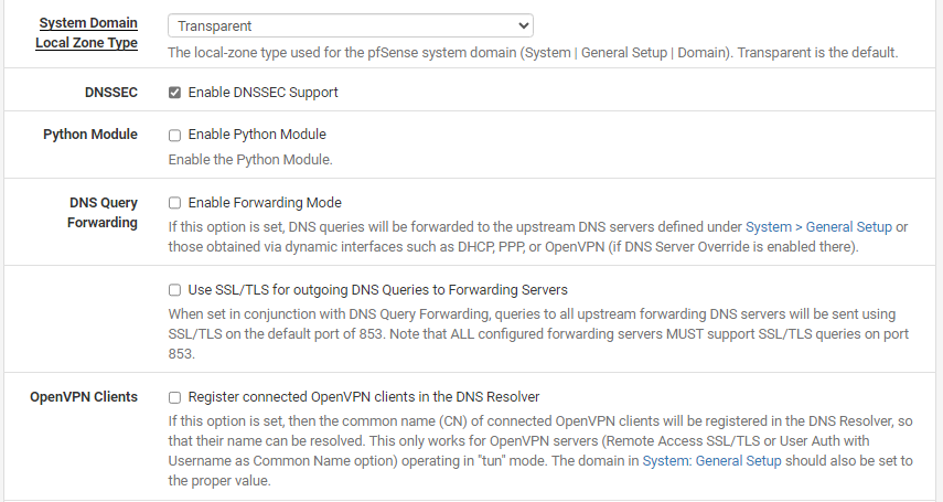 Le resolver DNS de pfsense est par défaut capable de résoudre des adresses par l'usage du protocole DNSSEC, version sécurisée du DNS