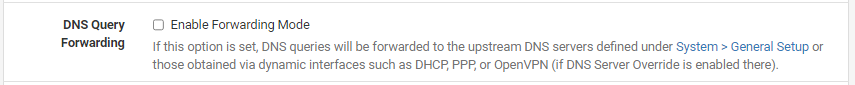 dans la configuration du DNS Resolver par Services > DNS Resolver et cocher la case Enable Forward Mode.