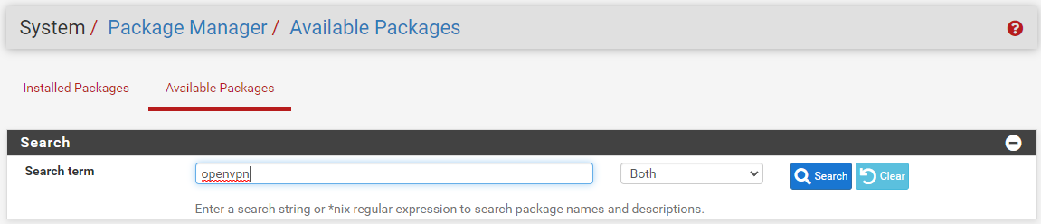 Dans la section Available Packages, dans la zone de recherche, saisir openvpn