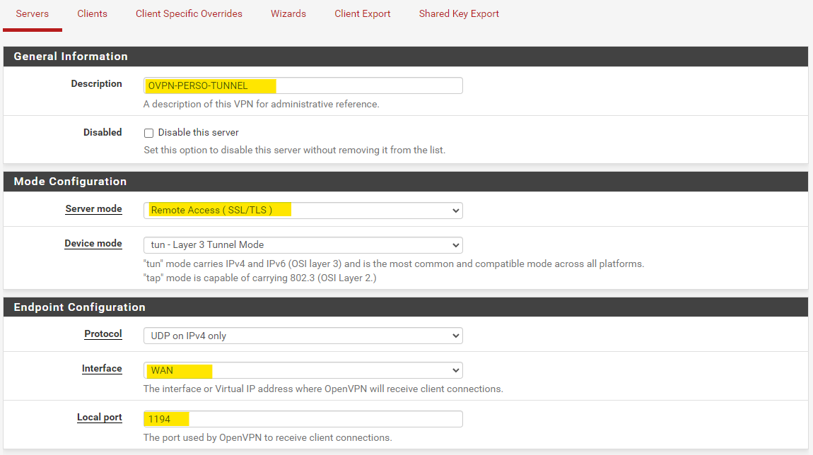 Commencez par vous rendre sur VPN > OpenVPN > Servers et faites + Add