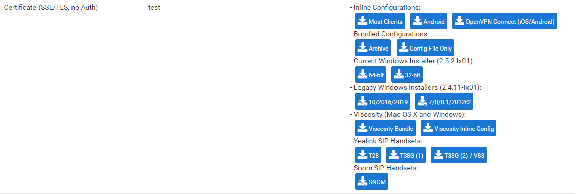 Sur pfSense l'export s'effectue depuis le menu VPN > OpenVPN. Si vous n'avez pas le menu Client Export, alors il faut procéder
