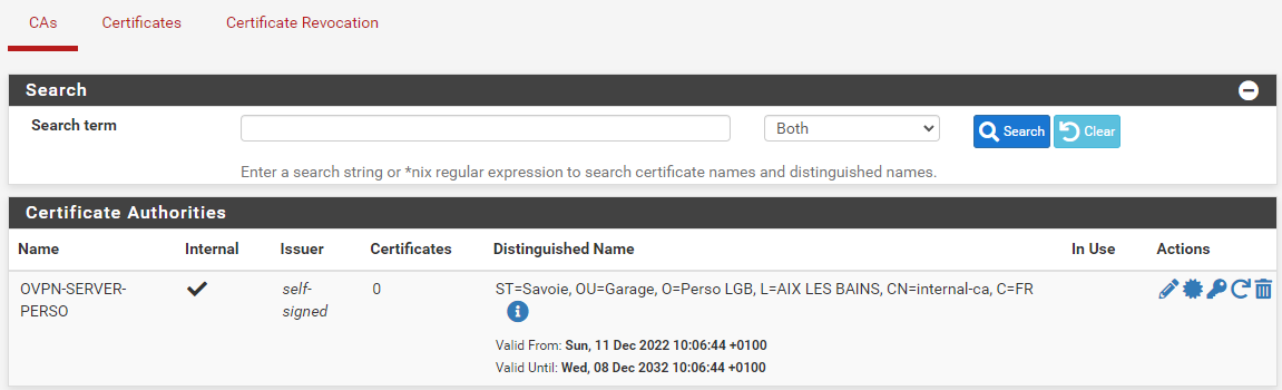 L'autorité de certification ainsi créée apparaît dans la liste des autorités de certification.