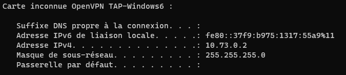 Lorsque vous établissez la connexion depuis OpenVPN Gui (dans la barre de systray), après quelques secondes vous obtenez
