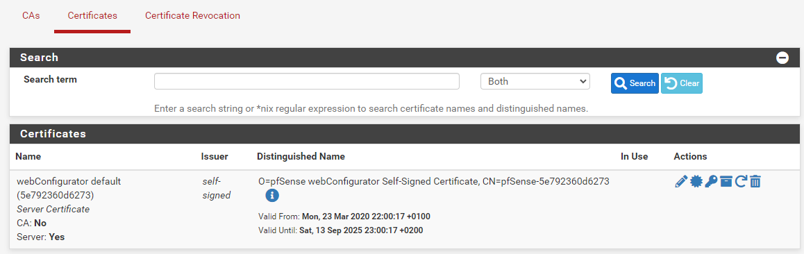 Il y en a déjà un : celui du configurateur Web de pfSense. Celui-ci ne nous concerne pas. Cliquez sur la bouton Add/Sign.