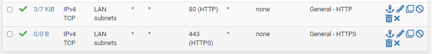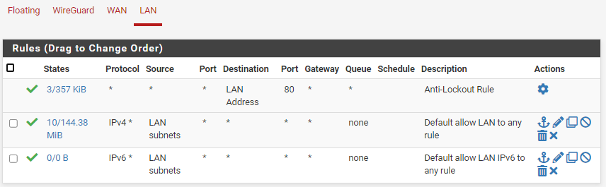au bout de chaque règle Default LAN to any rule et Default allow LAN IPv6 to any rule.