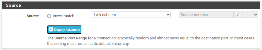 Sur la source, nous choisissons de traiter les paquets en provenance des subnets du LAN, et surtout aps de Any qui serait trop permissif