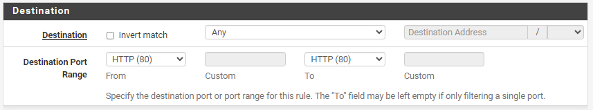 Dans la destination nous choisissons any et spécifions le port 80 utilisé par le protocole HTTP.