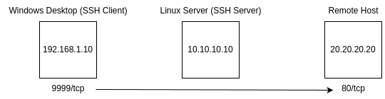 plink.exe -ssh -L 0.0.0.0:9999:20.20.20.20:80 username@10.10.10.10