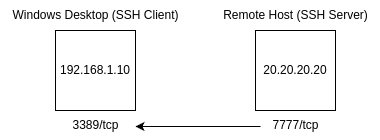 plink.exe -ssh -R 7777:localhost:3389 username@20.20.20.20