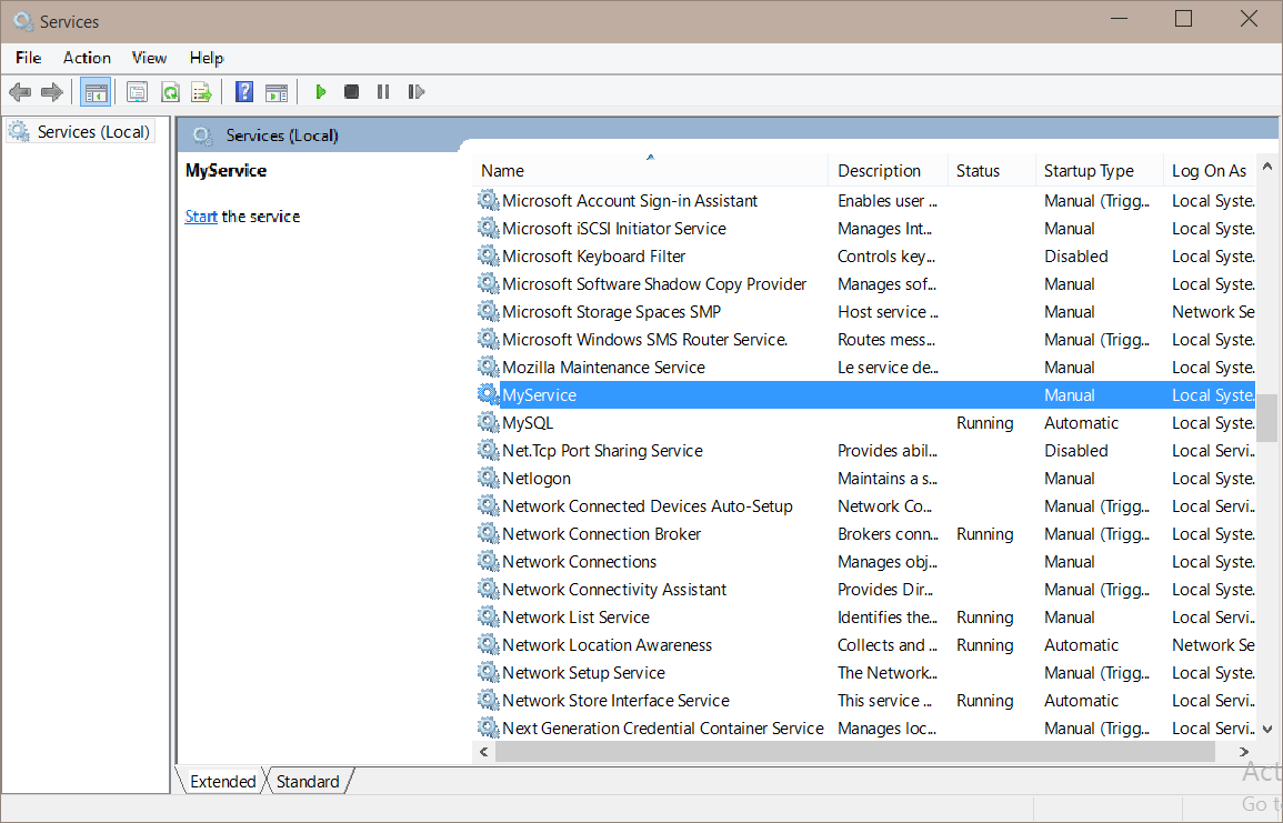 Une fois le service installé, il est disponible dans la liste des services de Windows accessibles