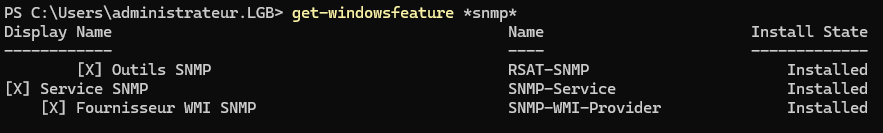 Le moyen le plus simple pour installer la prise en charge de SNMP sur Windows Server est de passer par les commandes Powershell. Cela permet d'activer le service sur un serveur local mais aussi sur un serveur distant si tant est que le PSRemoting est actif sur ce serveur distant...