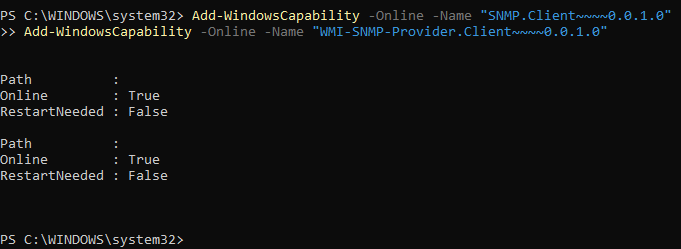PS> Add-WindowsCapability -Online -Name SNMP.Client~~~~0.0.1.0