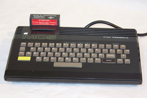 Suivant d'assez près l'apparition de son aîné TO7, la version MO5 se retrouve dans un châssis beaucoup plus petit, privé de son lecteur de cassettes intégré mais disposant d'un port cartouche. L'apparition du clavier à gomme permet d'oublier un peu les déboires rencontrés à l'utilisation du clavier sensitif du TO7 sans être véritablement très pratique. Le crayon optique, outil révolutionnaire du TO7 (mais pas très précis il faut l'avouer), n'est plus livré en standard mais est en option et se raccorde sur le port d'extension dédié.
