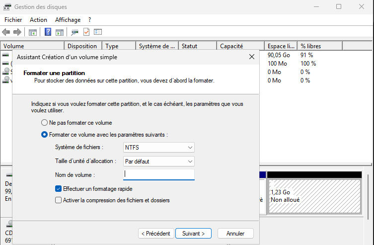Pour recréer la partition de récupération, nous définissons un nouveau volume simple sans lui affecter de lettre de lecteur