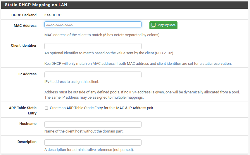 A ce moment-là, tout comme vous l'avez déjà fait pour le DHCP principal, vous pouvez ajouter une correspondance statique entre