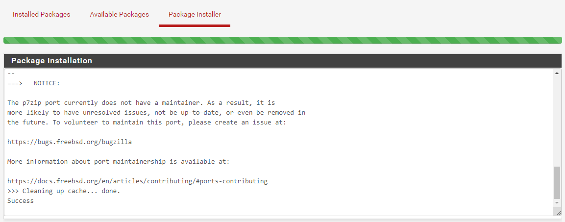 Cliquez sur + Install pour mettre en place le package d'export openvpn