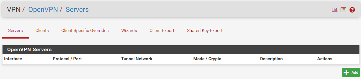 Commencez par vous rendre sur VPN > OpenVPN > Servers et faites + Add