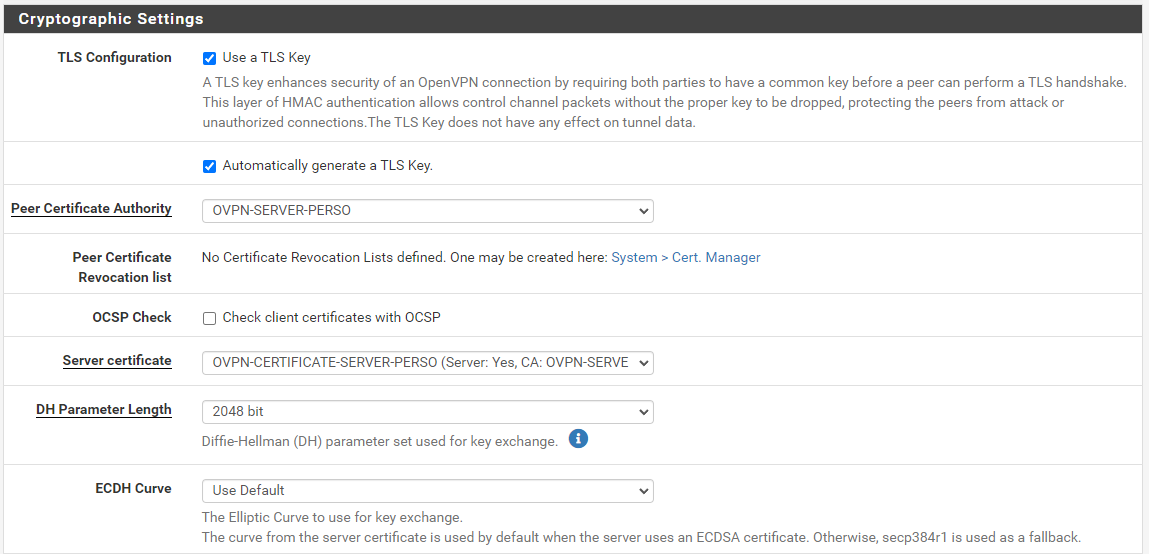Maintenant que vous avez le certificat, vous pouvez créer la configuration du serveur VPN qui va utiliser la configuration à base de certificats que vous venez de mettre en place. Ce serveur VPN sera le point d'entrée au tunnel que vous allez mettre en place pour vos utilisateurs.