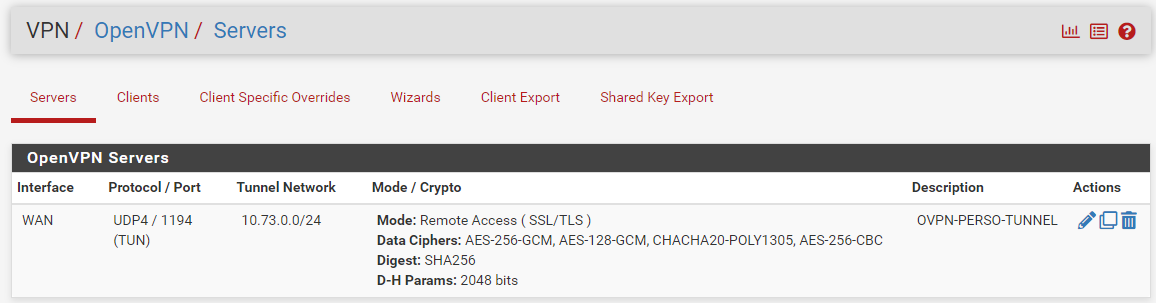 Vous pouvez maintenant faire Save et voir que votre serveur VPN avec son tunnel est créé et prêt à