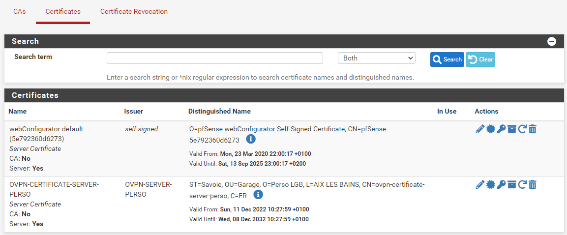 Il y en a déjà un : celui du configurateur Web de pfSense. Celui-ci ne nous concerne pas. Cliquez sur la bouton Add/Sign.