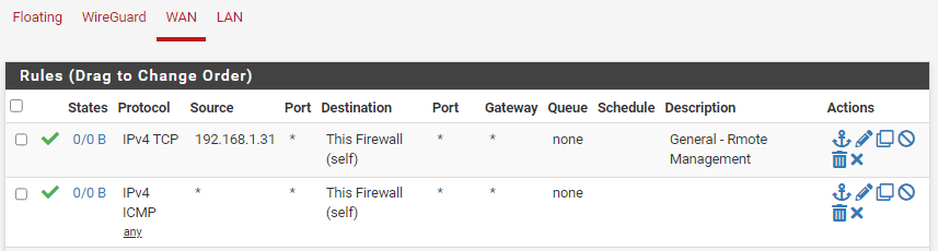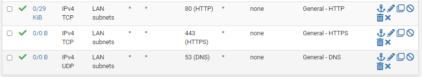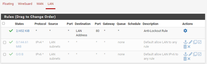au bout de chaque règle Default LAN to any rule et Default allow LAN IPv6 to any rule.
