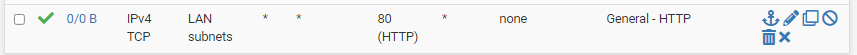 Après l'installation de pfSense, vous disposez par défaut de 3 règles de firewall sur la partie LAN, notamment la règle appelée