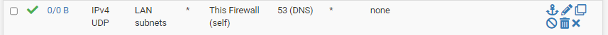 Cependant, pour autoriser la navigation internet, il faudra tout de même laisser passer le DNS sur 53/udp, toujours à destination du firewall