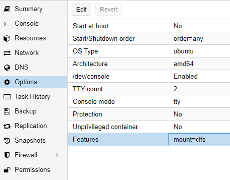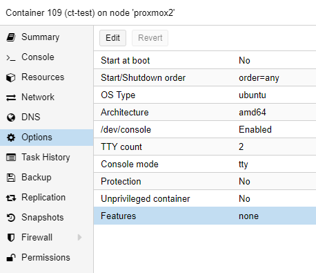 démarrer le container, allez dans Options > Features puis appuyez sur le bouton Edit.