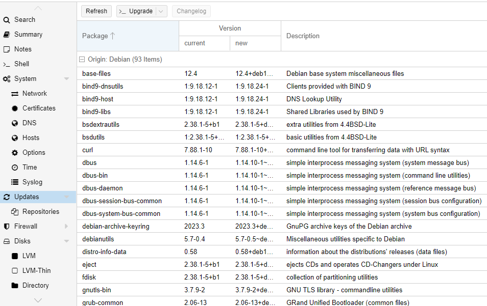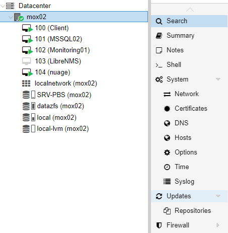 Il est maintenant temps de lancer les mises à jour en cliquant sur le nom du serveur Proxmox > Updates.